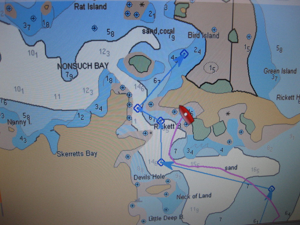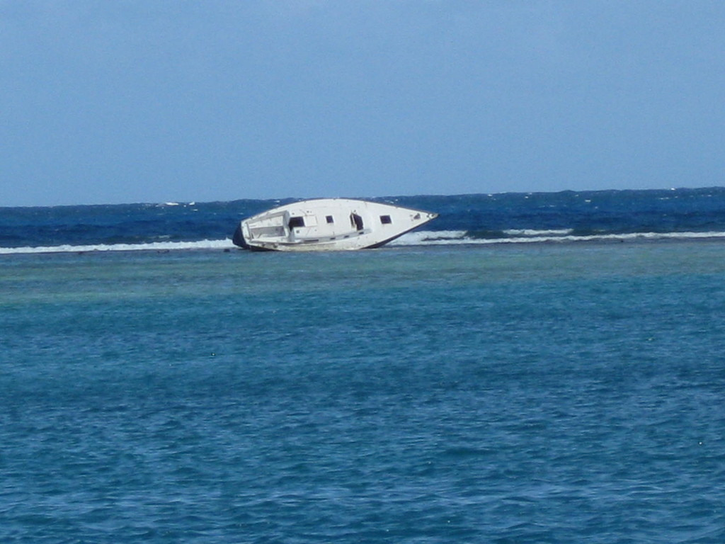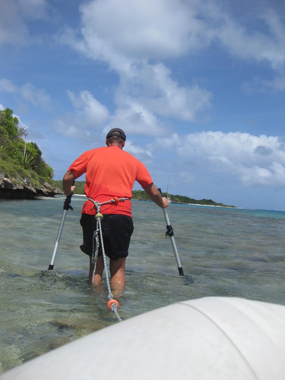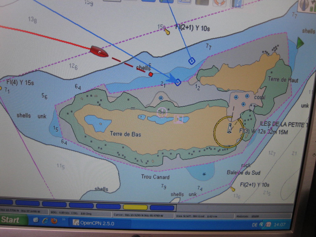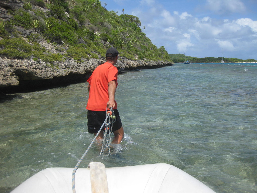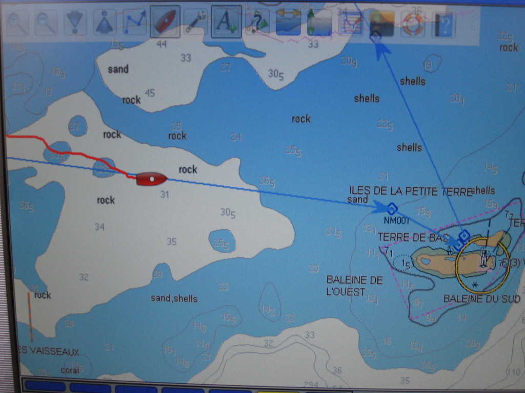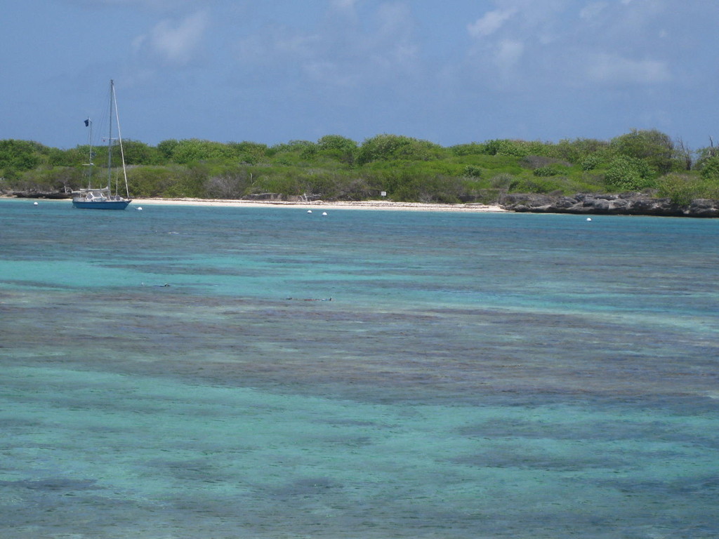 Petit Terre mit einer etwas tricky Einfahrt...die Anderen warten schon auf uns.